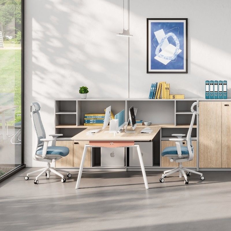 | Markeren: | Tweepersoons bureau,Partitie gescheiden personeelsbureau,Personeel bureau met archiefkast |