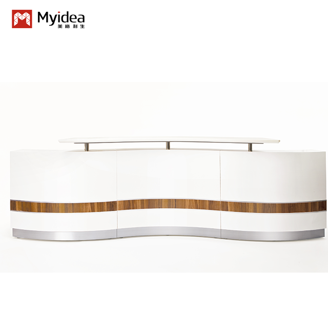 Gekrompen gebakken verf aan de receptie, bedrijf bar toonbank, schoonheidsziekenhuis, tandheelkundige kliniek, cirkelvormige kassier toonbank, eenvoudige en moderne receptie bureau
