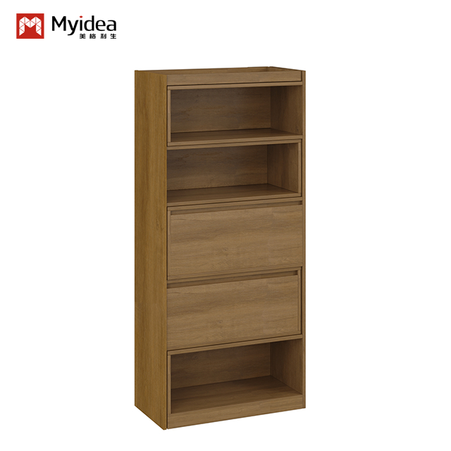 Materiaal:1. P2/E0-klasse MFC-bord met melamine afwerking; 2. zacht scharnier, schommelde deur.