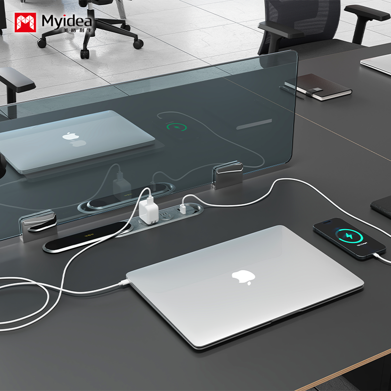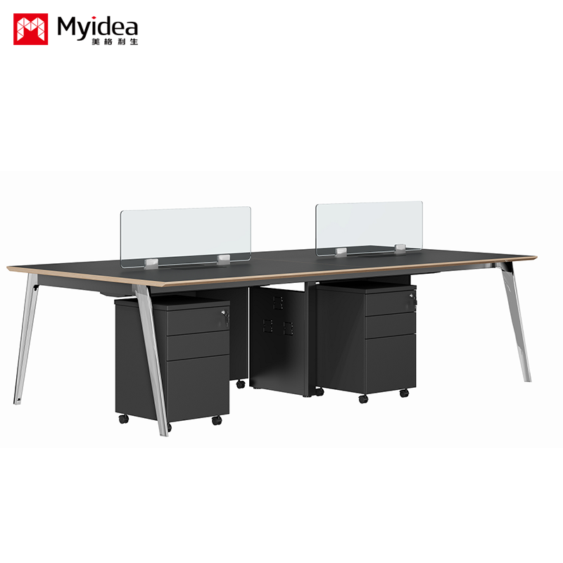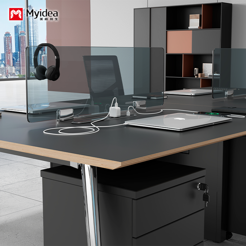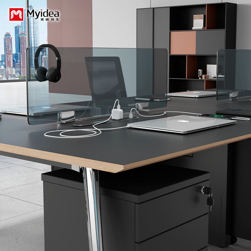 Aanpassing Het bureau is eenvoudig en modern, met 4 handmatige werkstations, het bureau is netjes en praktisch, met een scherm