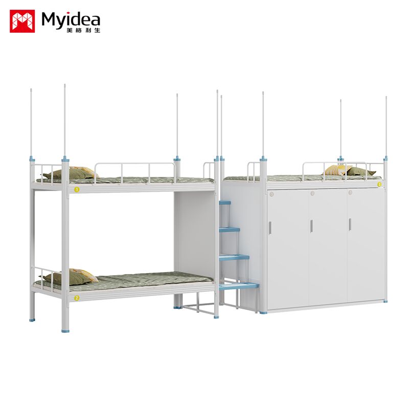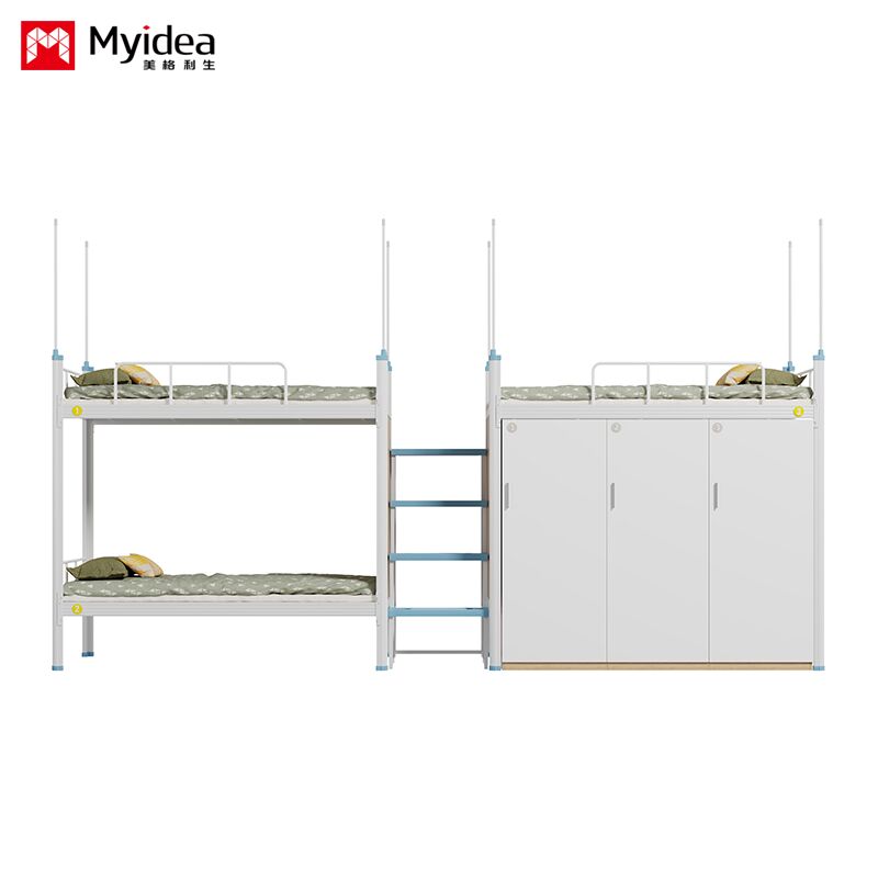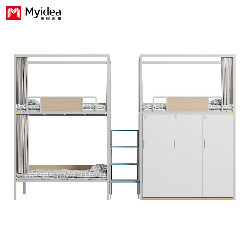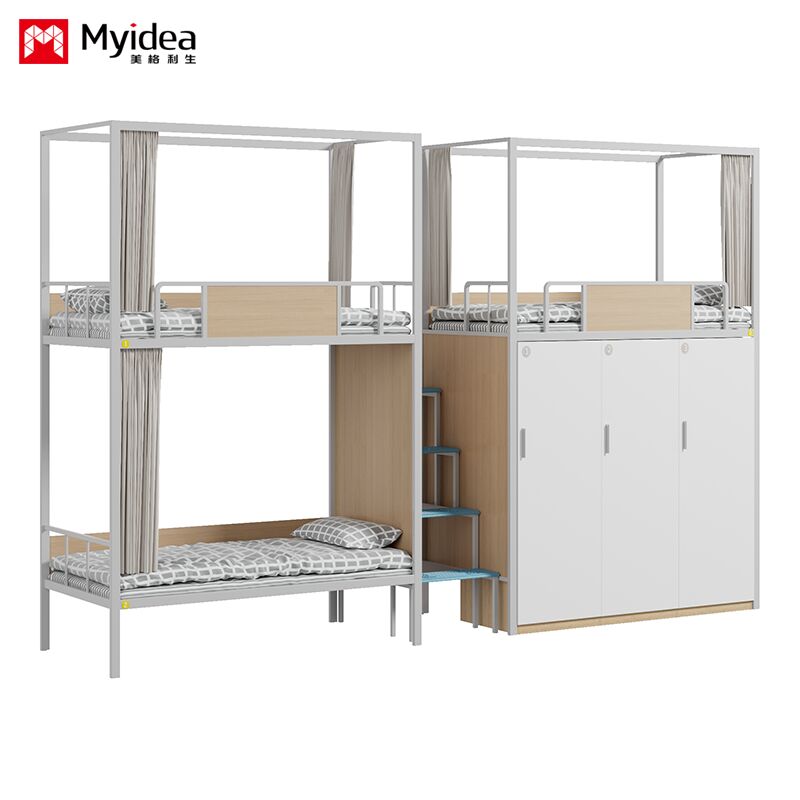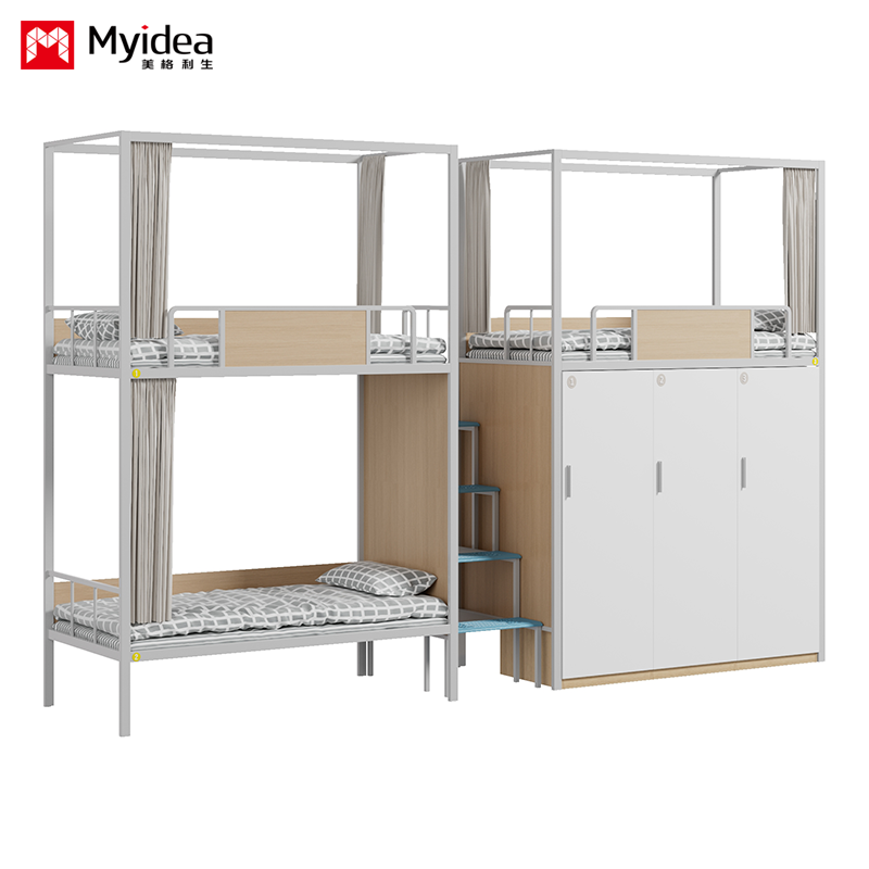 Slaapkamer Driepersoonsbed met kast, veilig nachtlicht Trappenladder, hoge beveiligingsrail, bedgordijn, schoolslaapkamerbed