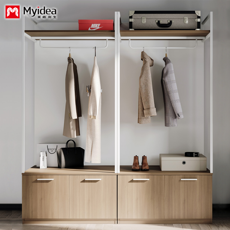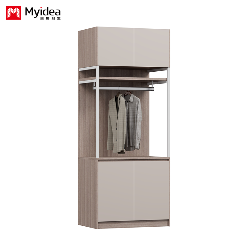 Geschikt voor hotels Ontwerp slaapkamer kast met hangende stok Ruim opslagruimte Panel Houten meubels voor thuis of woonkamer Ondersteuning aanpassing