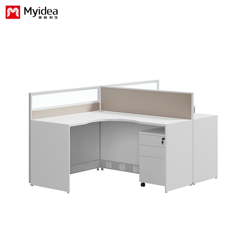 Foshan Groothandel Eénpersoons L-vormige Staff Licht gekleurde schermkaart slot Eenvoudige moderne scherm tafel en stoel combinatie