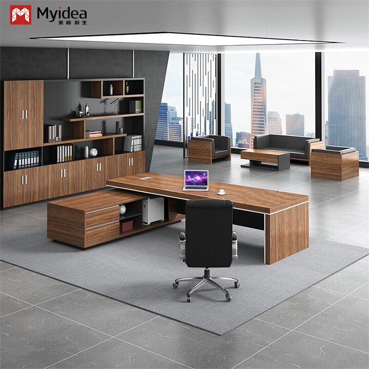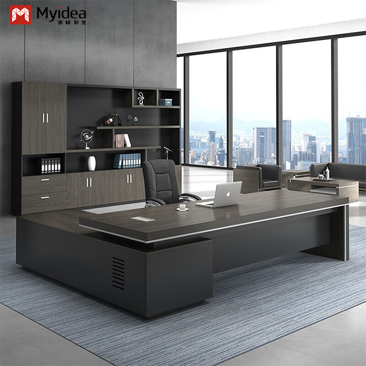 Moderne milieuvriendelijke L-vormige directiebureau met grote opbergkast